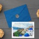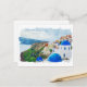 Great Santorini Greece artwork showing the amazing blue roof architecture and costal view of the greek island. Great souvenir and gift idea.