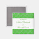 Pretty green Save the Date magnet. The lovely green boarder on top and bottom matches the green script for your wedding date and names. A great reminder for all your family and friends.