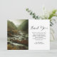 Thank you card with a nature photograph. Moody and beautiful landscape. A secluded stone bridge beside a lively river with waterfalls, forest and mountains surrounding the area.
