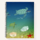 Sea turtles and shells with pearls Notebook. Beautiful relaxing ocean colours. Text can be personalised.
