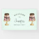 Birthday welcome banner with a delicious layered party cake. This double decker cake is adorned with pearls and bows and simple florals. Colours include rose gold, magenta, and gold. Delectable chocolate dripping down the sides. Designed with a shiny gradient for extra glitz and glam.