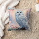 Beautiful Snow Owl, pink flowers. Editable name Cushion