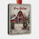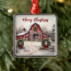 Beautiful Snowy Winter Rustic Red Barn Christmas Metal Ornament | Personalise with a year or any text that you wish to add.