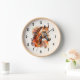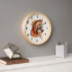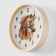 A clock with a beautiful illustration. A copper brown chestnut coloured horse head and upper body. With watercolor patches behind.