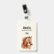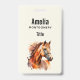 Name badge with a beautiful illustration. A copper brown chestnut coloured horse head and upper body. With watercolor patches behind.