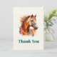 Thank you card with a beautiful illustration. A copper brown chestnut coloured horse head and upper body. With watercolor patches behind.