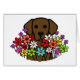 Beautiful Chocolate Labrador Illustration design for dog lovers who love Labrador Retriever dogs. Colourful and beautiful flowers are blooming around the dog. You can add text as you like. Chocolate Lab Dog digital drawing created by Naomi Ochiai from Japan.