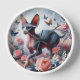 A pretty sphynx cat walks through colourful flowers and butterflies in this fun design.