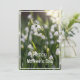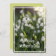Beautiful Leucojum aestivum blooms, also known as Loddon Lily or Summer snowflake. These delicate white flowers have drooping bell-shaped petals which hang gracefully from a curved stem, which stands out against a the blurred background of green foliage bathed in soft sunlight. A gorgeous floral Mother's Day card to send to a special lady in your life.