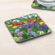 Coaster with beautiful spring garden print. Tulips, daffodils and hyacinth flowers.