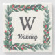 Beautiful Square Christmas Wreath Monogram Stone Coaster