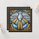 Elegant and colourful stained glass window dove memorial service invitation template. This beautiful black and gold dove funeral notice is easily customised for your event by simply choosing the customise it button to begin.