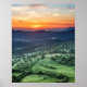 Beautiful sunset behind green fields poster