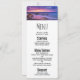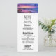 Event menu with a lovely photograph featuring striking colours of purple, blue and pink at sunset.