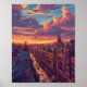 Beautiful Sunset in Madrid Spain. aesthetic art print poster painting home decor of city in Europe