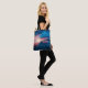 Tote bag with a gorgeous photograph. A scenic spot. A nice calm lake with a wooden dock stretching outwards. Setting sun provides beautiful colours in the sky, vibrant red and blue.