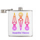 The flask itself is fine. It’s a cheap flask, obviously bought in bulk, however am prepared to overlook that. Given that it is a personalized item, I would have liked to have seen gift boxing instead of the generic packaging. Terrible printing, and/or quality. It’s a cheap, tacky vinyl. It is not cut straight and is also applied in a way that it is overhanging the bottom, causing the glue to catch on items and it will eventually roll and tear, damaging the wrap.