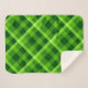 A small sized sherpa blanket featuring a beautiful, vibrant, tree green plaid pattern design.