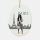 Beautiful Trendy Girl in Paris Christmas Ceramic Ornament