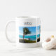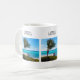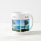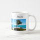 A mug with a scenic photograph. A clear blue ocean with a white sandy beach.