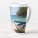 Beautiful Tropical Beach with a Rowboat Latte Mug
