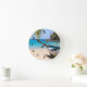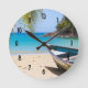 Beautiful Tropical Beach with a Rowboat Round Clock