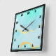 A clock with a vibrant summery design. Turquoise / aqua green watercolor image with a wavy faux gold border. Elegant and lovely.
