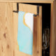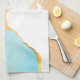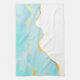 A kitchen towel with a vibrant summery design. Turquoise / aqua green watercolor image with a wavy faux gold border. Elegant and lovely.