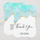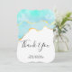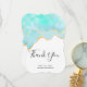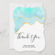 Thank you card with a vibrant summery design. Turquoise / aqua green watercolor image with a wavy faux gold border. Elegant and lovely.