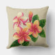 Beautiful Tropical Pink Flowers on Beige Cushion