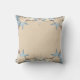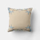 A beautiful custom pillow with an exotic beach theme. A pretty sand texture background pattern in neutral cream tones and shades of ocean blue. On top are a variety of pebbles, shells, sea urchins, starfish and pearls.