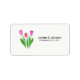 A pretty grouping of colourful tulips with long green leaves accent this. Add name and address as desired.