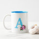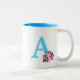 Beautiful turquoise monogram with apple flowers Two-Tone coffee mug