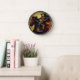 Wall Clock, 25.4 cm Round Black Wooden Frame