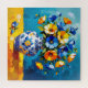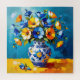 Beautiful puzzle to bring you hours of fun with a beautiful impasto style ai illustration of blue and orange flowers in a fancy vase.