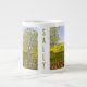A mug with a beautiful image of a nature scene: A bird sitting on a weathered fence, wildflowers growing around the fence, a farmer on a tractor, working his land, trees with leaves, and farmland with various colours. The background and image can be customised. Text may be added. Original artwork by W.B.
