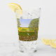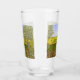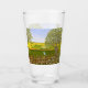 A glass with a beautiful image of a nature scene: A bird sitting on a weathered fence, wildflowers growing around the fence, a farmer on a tractor, working his land, trees with leaves, and farmland with various colours. The background, image and text can be personalised. Original artwork by W.B.