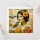 Pretty vintage woman with birds and orange and yellow flowers. Inspirational words beauty, hope, inspire and love.