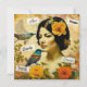 Beautiful Vintage Woman with Birds and Flowers