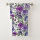 Beautiful blue & purple violet flowers floral pattern bathroom towel set.
