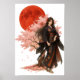 Elegant fantasy illustration of a samurai woman beneath cherry blossoms and a red moon, blending Japanese aesthetics, dramatic mood, and high-detail digital art. Available in multiple colours. Artwork optimised for dark and light apparel or merch.
