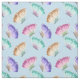 Favric with a beautiful pattern. Watercolor butterflies, painted in pastel colours including pink, purple, blue, yellow and green. Light blue background.