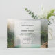 Wedding invitation with an amazing photograph. An aerial view of some breath-taking waterfalls surrounded by a lush green forest of trees and mountains.