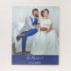 A lovely photo of a Bride and Groom, easily upload your template to the design. You can also change the background colour at the bottom where your name and wedding date appears.