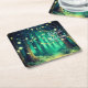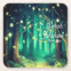 A beautiful evening wedding, engagement, or anniversary with a forest path adorned with fairy lights in the trees, creating a stunning backdrop. A gentle mist lingers in the background of the forest, with countless trees and lights hanging gracefully from their branches.