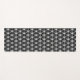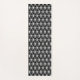 Elegant Yoga mat with white flower of life pattern on black background on the front side. On the back side is only grey background and the word YOGA inside a circle. Text can be customised.