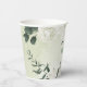 Beautiful botanical paper cup featuring romantic white flowers with green leaves.