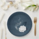 beautiful white flowers & navy leaves botanical wedding paper plates