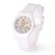 A watch with a photograph of a gorgeous white horse. Running through a snow covered field. Majestic and beautiful.