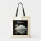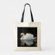 Both sides of this handy tote bag feature an elegant white mute swan. The bag has black handles and one side can be personalized with your name. The photo has been digitally enhanced to bring out the whiteness of the swan against the dark black water is swimming on. The swan is beautifully reflected in the water and the feeling is peaceful.